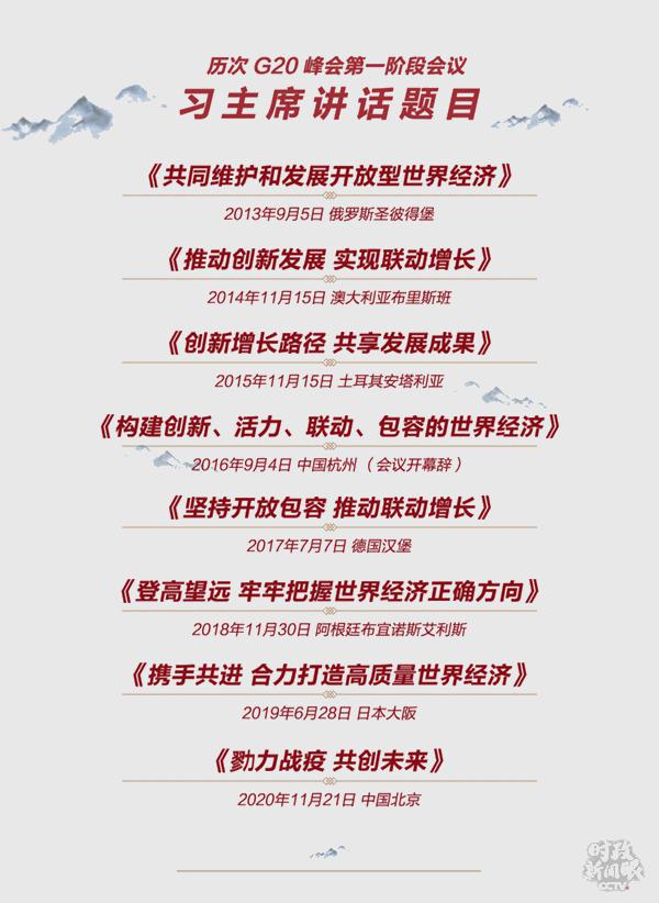11月21日晚,连续第八年出席G20峰会的习主席在峰会第一阶段会议上发表题为《勠力战疫 共创未来》的讲话,既提出抗疫情、稳经济、保民生的路线图,也呼吁G20在全球治理方面发挥更大引领作用。