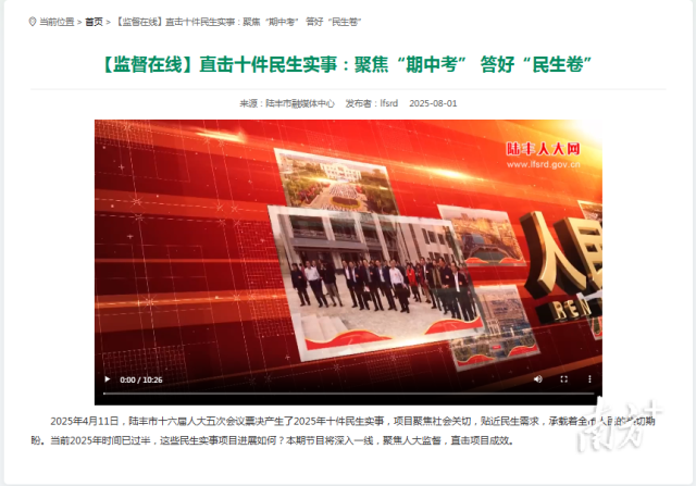 此次监督引入媒体“利器”——由陆丰市人大常委会与陆丰市融媒体中心联合开设的《监督在线》栏目全程介入。镜头真实记录代表履职过程:既有项目按计划顺利推进的亮点展示,也毫不避讳地曝光个别进度滞后项目。责任部门负责人面对镜头现场承诺整改时限,接受人大代表与社会公众的双重监督。