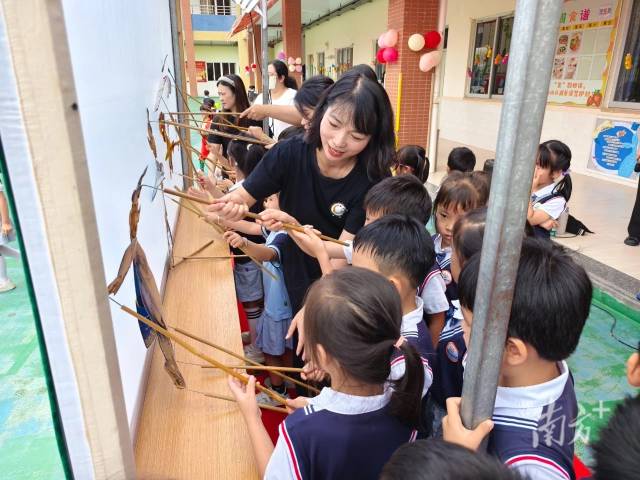 为让非遗种子在青少年心中发芽,她与陆丰市皮影戏传承保护中心演职员一起推动陆丰皮影戏走进校园。在课堂上,她教孩子们绘制简易皮影、操纵影人动作,还编排了《和谐盛世》等儿童剧,让孩子们在动手实践中感受传统文化的魅力。“看到孩子们拿着自己做的皮影,兴奋地模仿剧中角色,我就知道文化的根脉正在延续。”高晓玲笑着说。