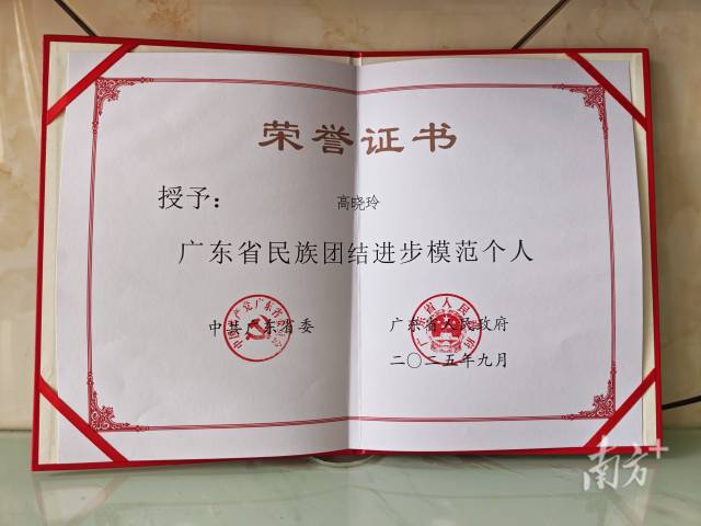 “我是一名人大代表,更是一名非遗传承人,我真的从没想过能站上全省的领奖台,荣获‘广东省民族团结进步模范个人’这份沉甸甸的荣誉。在我看来,‘广东省民族团结进步模范个人’不仅仅是一个光荣称号,更像一份暖心的鞭策,一盏前行的指引。往后我会继续沉在基层,一方面打磨更多有温度的陆丰皮影戏作品,用传统技艺讲好民族团结的故事;另一方面也会履行好代表职责,为非遗传承发声,尽自己所能为这份事业添砖加瓦。”10月14日上午,全省民族团结进步表彰大会在广州召开,广东省十四届人大代表,三级演员、陆丰市皮影戏传承保护中心青年演员高晓玲,手捧广东省民族团结进步模范个人荣誉证书,脸上洋溢着灿烂的笑容。她说,要把这份珍贵的荣誉化为动力,在非遗传承与民族团结事业的道路上继续坚定前行。