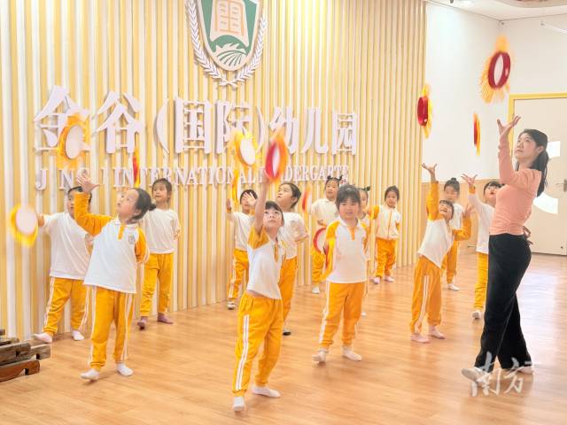 开办幼儿园以来,欧炎尝试将陆丰的国家级、省级非遗英歌舞、钱鼓舞等中华优秀传统文化系统性地融入学前教育体系,通过丰富多样的非遗项目体验和亲子互动环节,让孩子们在欢乐中领略中华文化的博大精深,使幼儿教育既饱含文化韵味,又焕发满满活力。