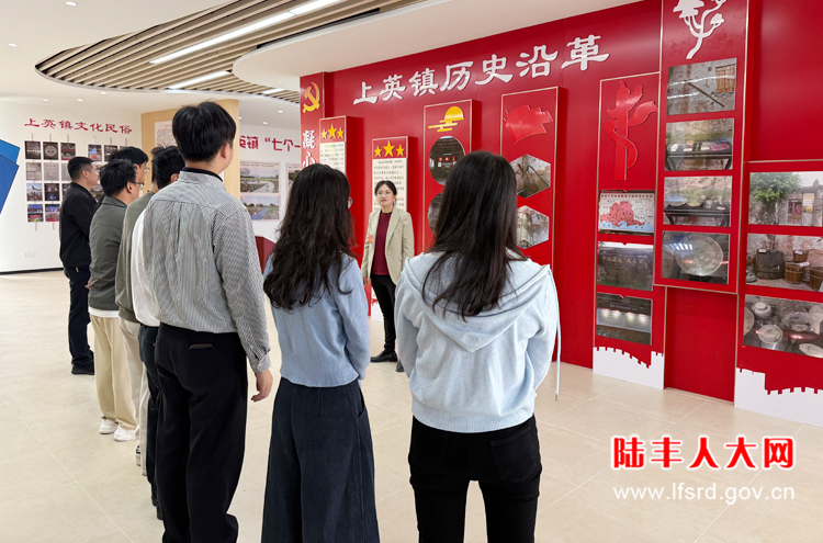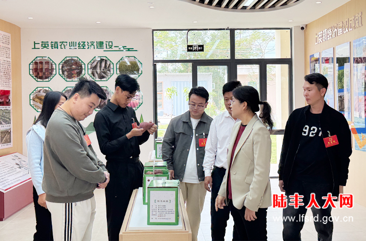 随后,代表们走进圩镇客厅,详细了解其功能布局和建设进展。据介绍,圩镇客厅建筑面积900多平方米,集历史沿革展示、文化底蕴呈现、规划布局解读、建设成效宣传、经济发展推介、特色产品展销、休闲交流互动于一体,内部划分了圩镇展厅、电商活动区、农产品展销区等多个板块,全方位呈现上英镇的文化底蕴、规划布局与发展成效。