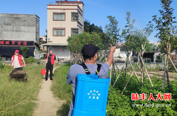 7月31日,竹湖村人大代表联络站组织人大代表开展“我为群众办实事”活动,为植树木统一进行打药除虫,以保证树木健康生长。