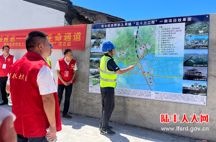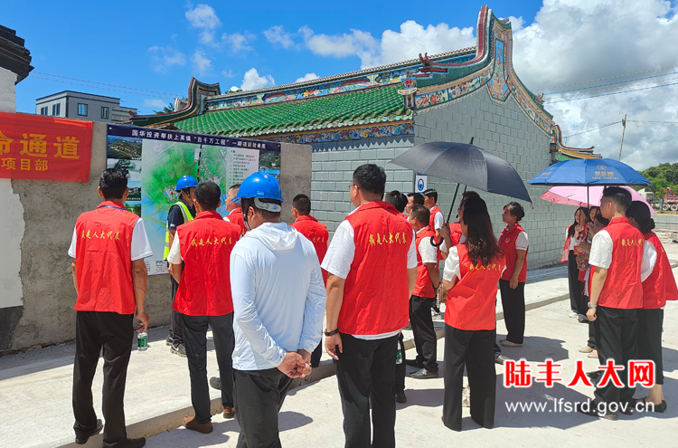活动中,代表们来到“连带成片”示范片区“魅力滨河”上英段海口村新溪村现场,实地察看了工程施工情况,认真听取了业主国家能源集团国华投资广东公司委托的施工方对整个工程的讲解。据介绍,该项目以生态建设为发展原则,营造和美渔村栖居的生活方式。目前,新溪村内主干道已经完成硬底化工程,道路两旁的统一外立面提升改造也已完成,均为白墙黑瓦的统一样式。国华投资公司日后还将帮扶我镇海口村建成时光露营地(露营基地)、渔家乐(榕树餐厅)、甘薯体验园、海口垂钓体验馆、古渡口体验平台等项目。
