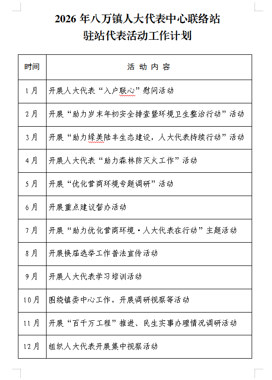 八万镇人大代表中心联络站2026年活动工作计划