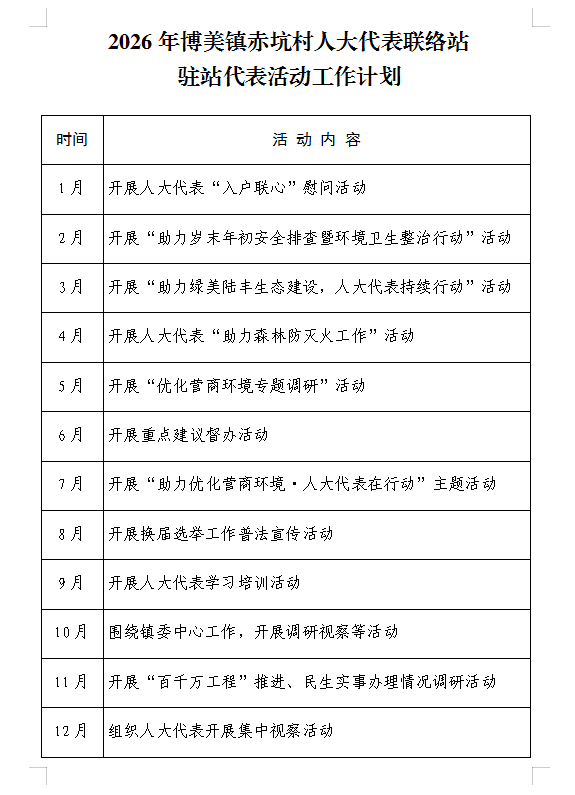 博美镇赤坑村人大代表联络站2026年活动工作计划