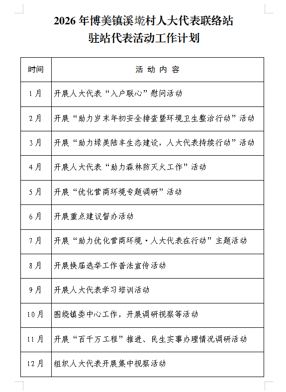 博美镇溪墘村人大代表联络站2026年活动工作计划