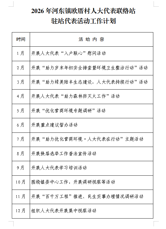 河东镇欧厝村人大代表联络站2026年活动工作计划