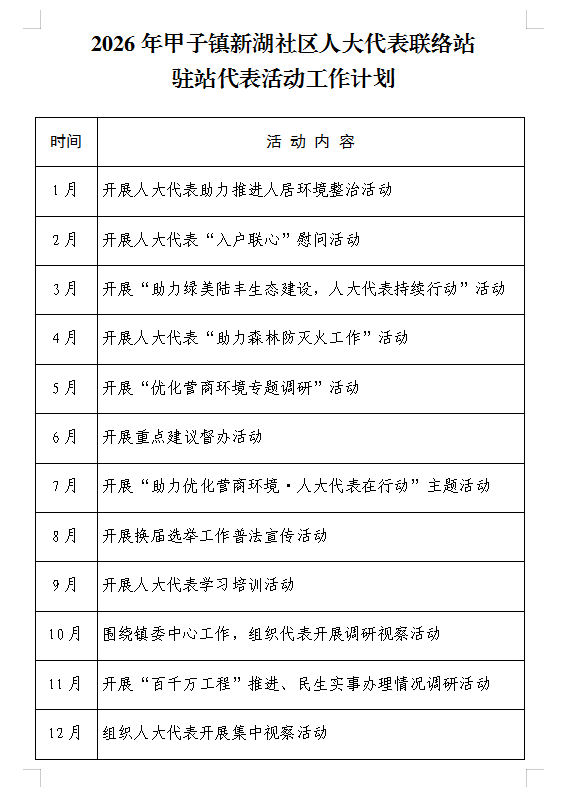 甲子镇新湖社区人大代表联络站2026年活动工作计划