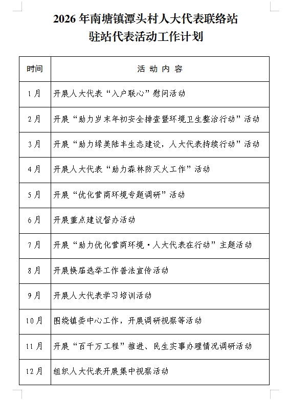 南塘镇潭头村人大代表联络站2026年活动工作计划