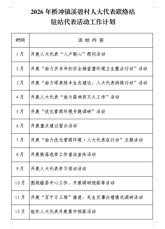 桥冲镇溪碧村人大代表联络站2026年活动工作计划
