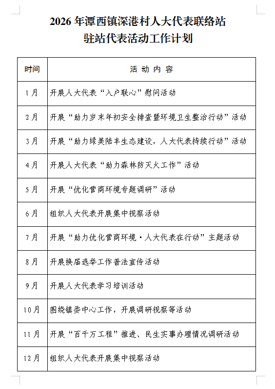 潭西镇深港村人大代表联络站2026年活动工作计划