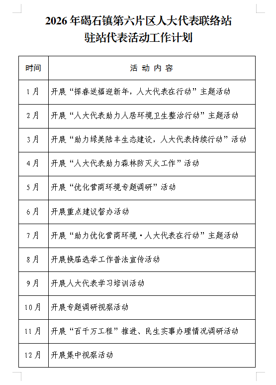 碣石镇第六片区人大代表联络站2026年活动工作计划