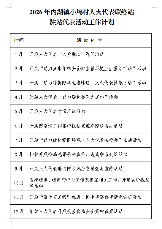 内湖镇小坞村人大代表联络站2026年活动工作计划
