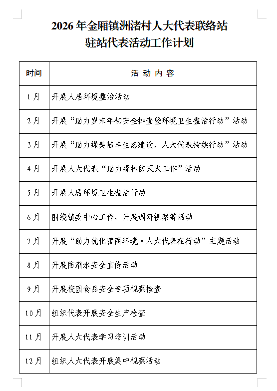 金厢镇洲渚村人大代表联络站2026年活动工作计划