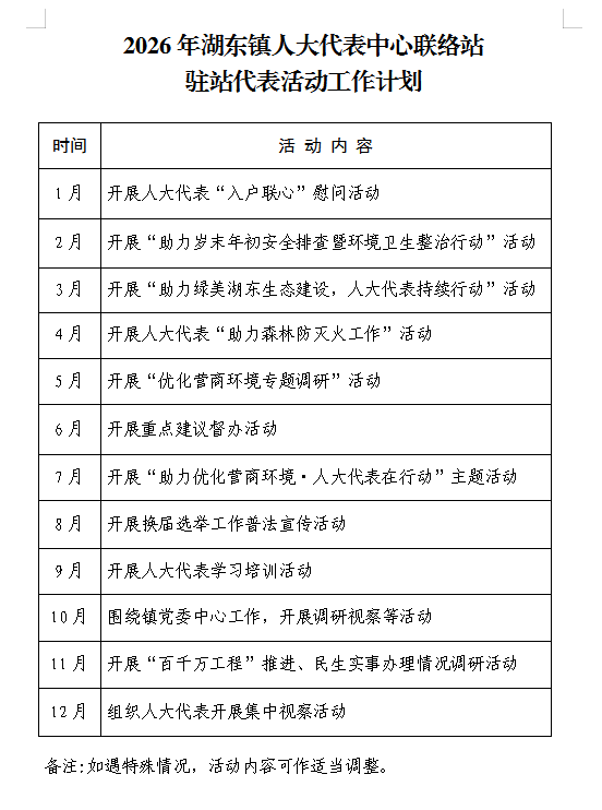 湖东镇人大代表中心联络站2026年活动工作计划