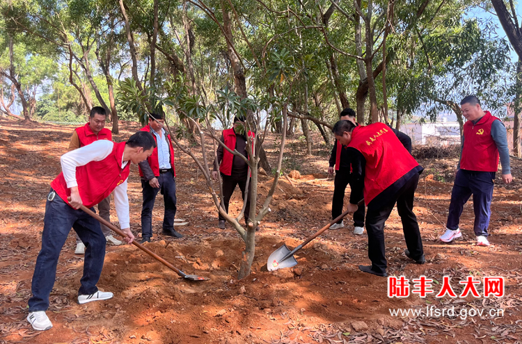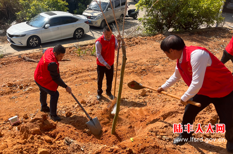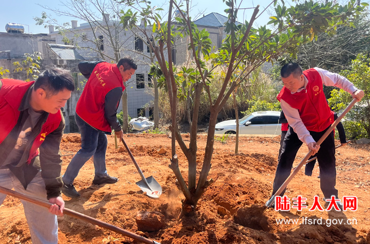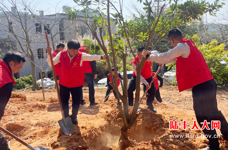 陂洋镇镇长陈启荣率队到洋口村后龙身公园开展乡村绿化主题植树活动,各级人大代表、党员干部及志愿者等,共同为绿美生态建设添砖加瓦。大家分工明确,配合默契,现场一派热火朝天的劳动景象。经过一番辛勤劳动,种下40颗风玲木、60颗果树共计100颗树苗,树苗在春风中舒展枝叶,展现出勃勃生机。